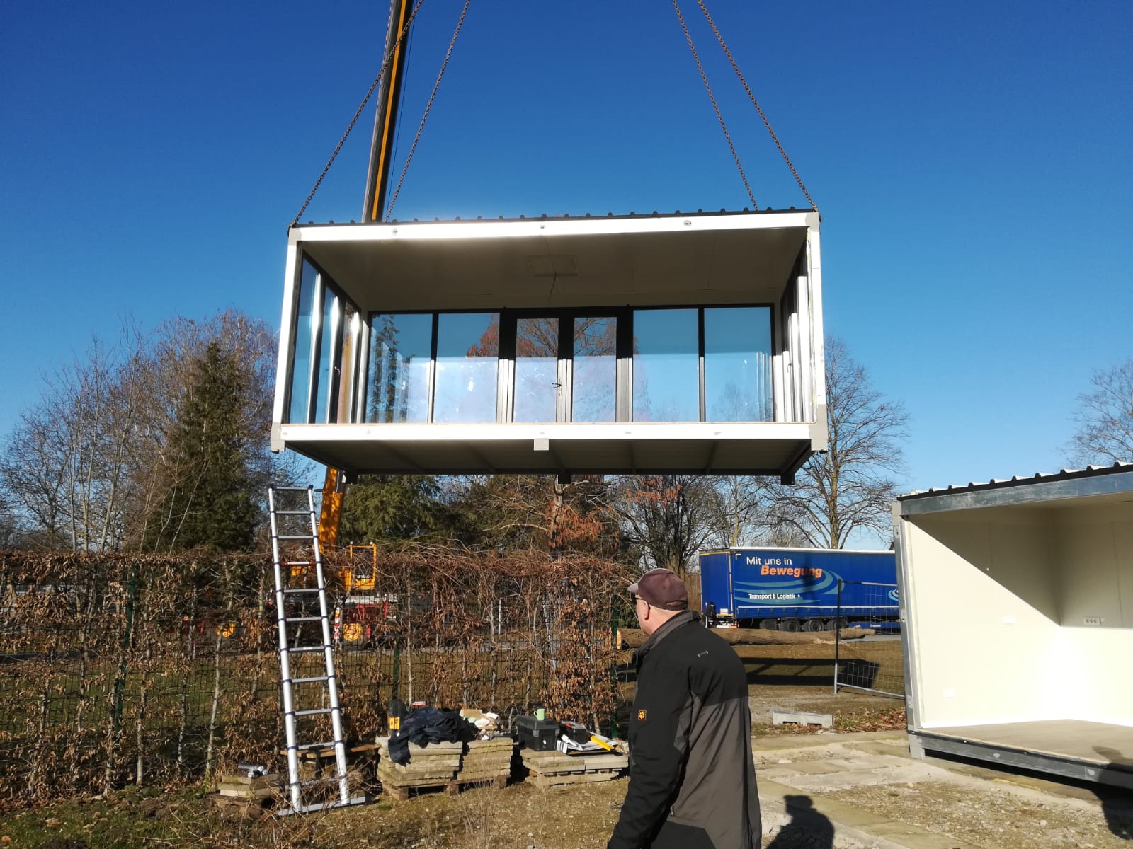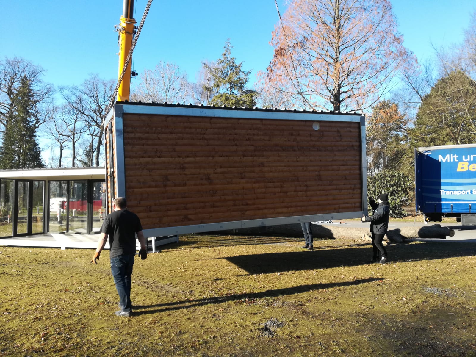 Heute kam der neue Imbiss für das Naturbad Ennigerloh „angeflogen“. Der Förderverein hatte am Wochenende alles vorbereitet und heute kam der Imbisscontainer und wurde vom Kran an Ort und Stelle gebracht. In den nächsten Wochen erfolgt der Innenausbau durch den Förderverein.