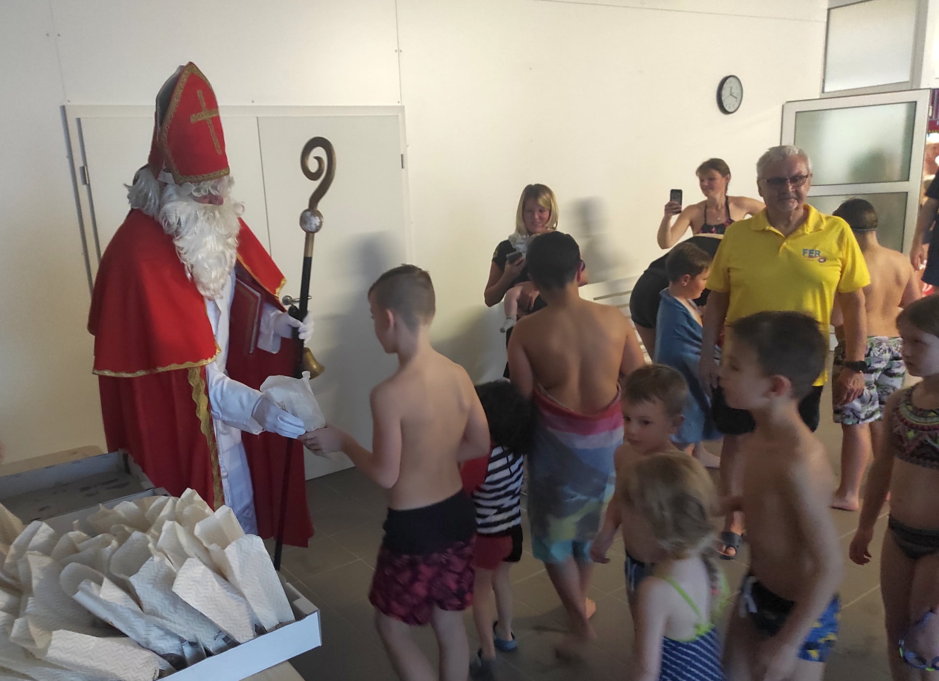 Traditionell besucht der Nikolaus jedes Jahr auch das Hallenbad in Ennigerloh. Auch in diesem Jahr ließ er sich einen Besuch nicht nehmen und versorgte die anwesenden Kinder mit frischen Stutenkerlen.