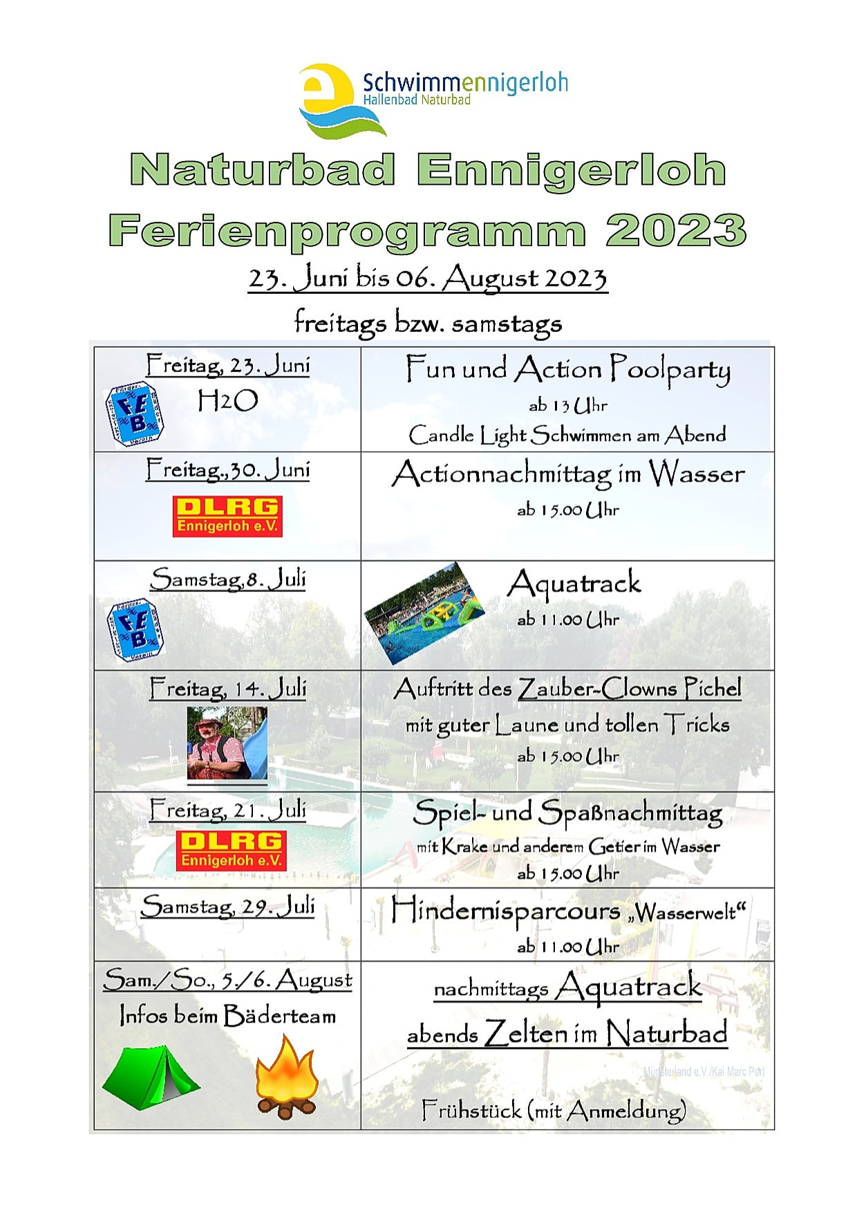 Außerdem werden in der Sommerferien folgende Ferienaktionen für Kinder im Naturbad angeboten:
