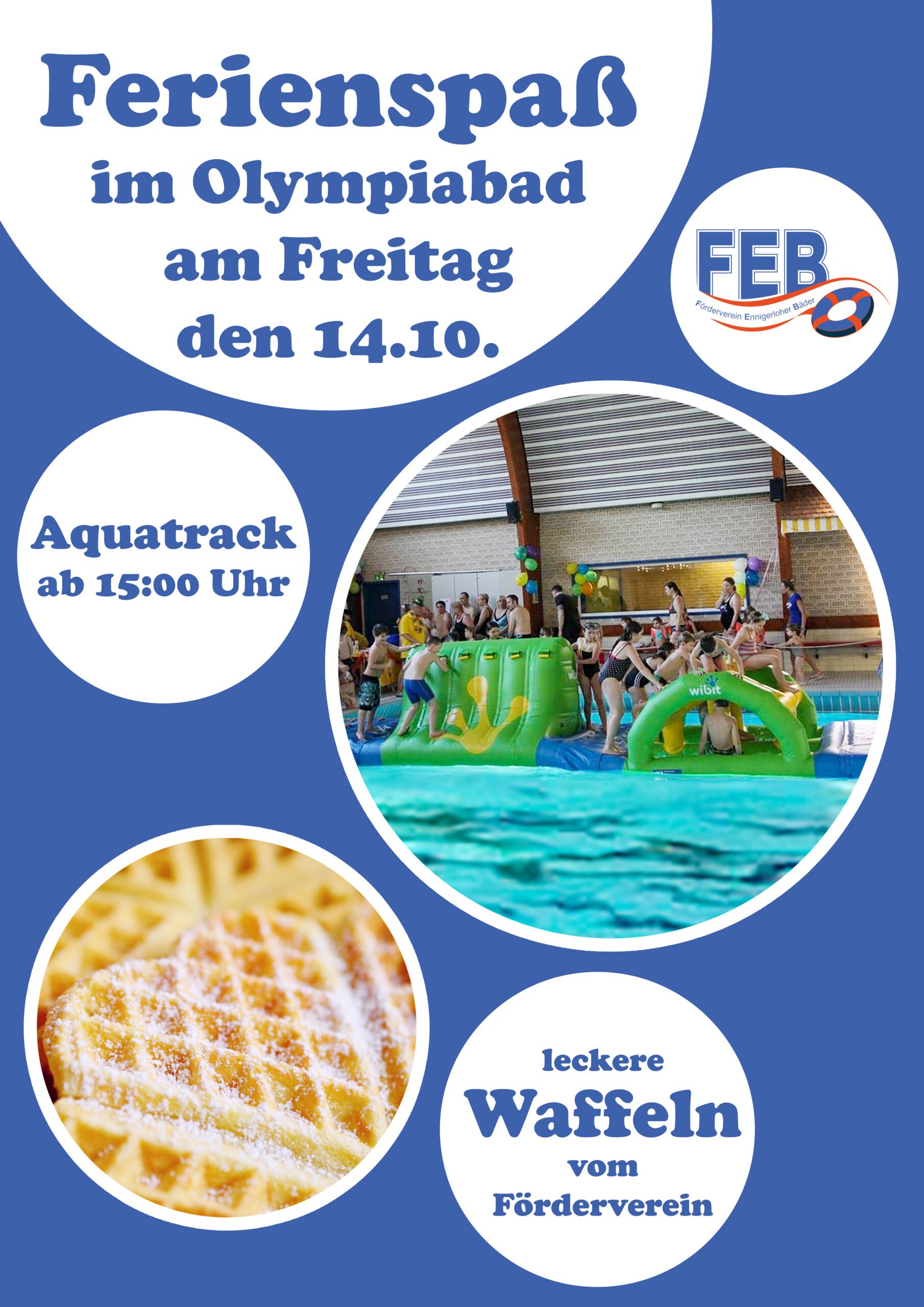 Am Freitag den 14. Oktober 2022 veranstaltet der Förderverein Ennigerloher Bäder ab 15:00 Uhr eine Herbstferienaktion im Olympiabad Ennigerloh. Der beliebte Aquatrack wird aufgebaut und sorgt garantiert für jede Menge Spaß bei den Kindern.