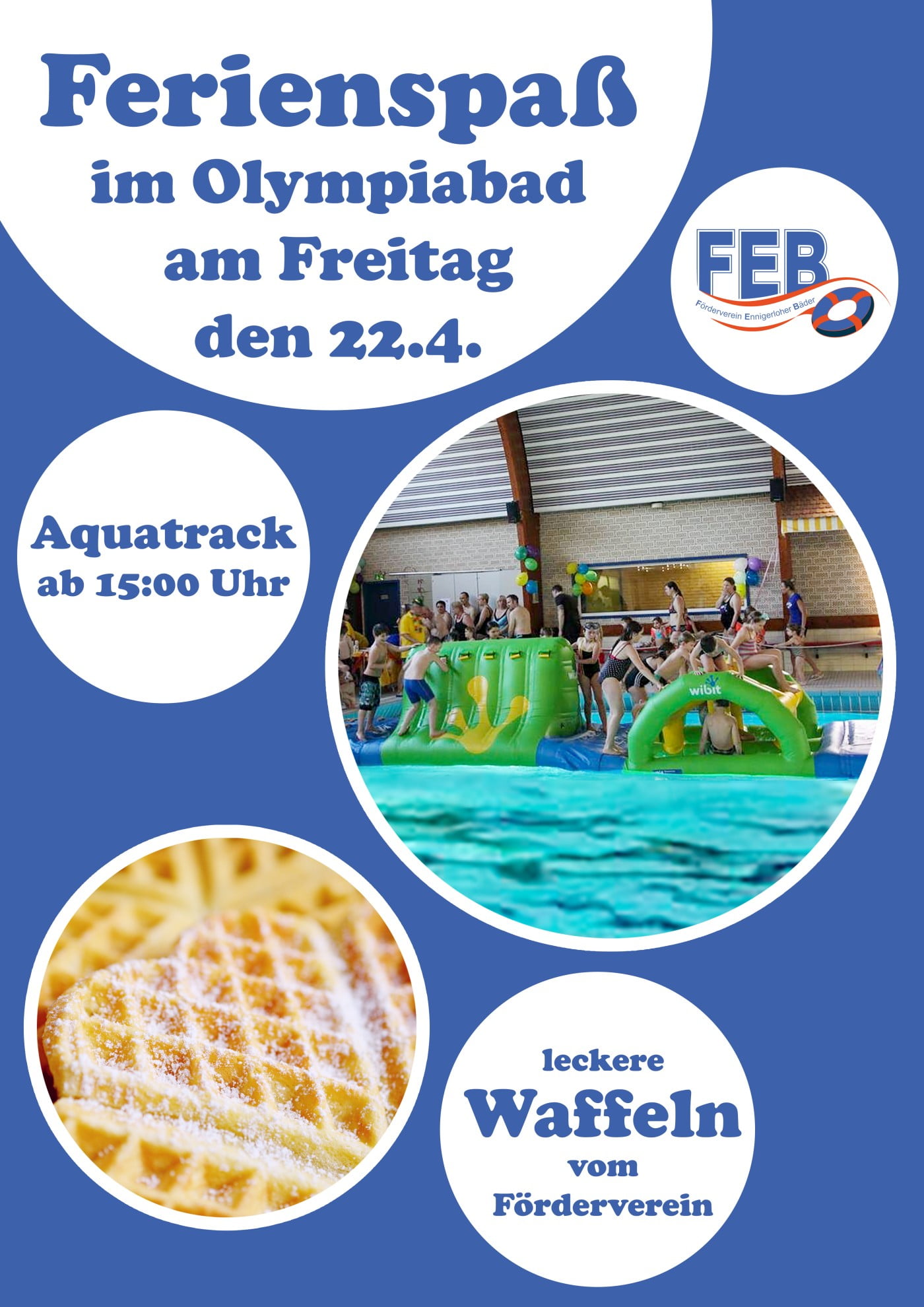 Am Freitag den 22. April 2022 veranstaltet der Förderverein Ennigerloher Bäder ab 15:00 Uhr eine Osterferienaktion im Olympiabad Ennigerloh. Der beliebte Aquatrack wird aufgebaut und sorgt garantiert für jede Menge Spaß bei den Kindern.